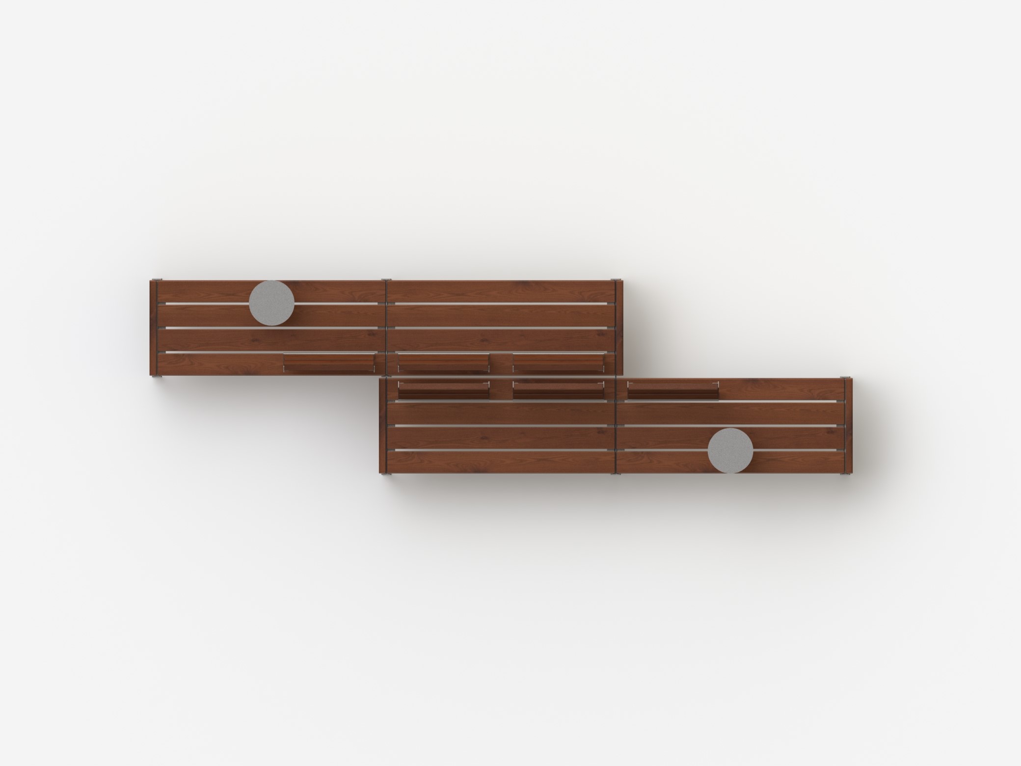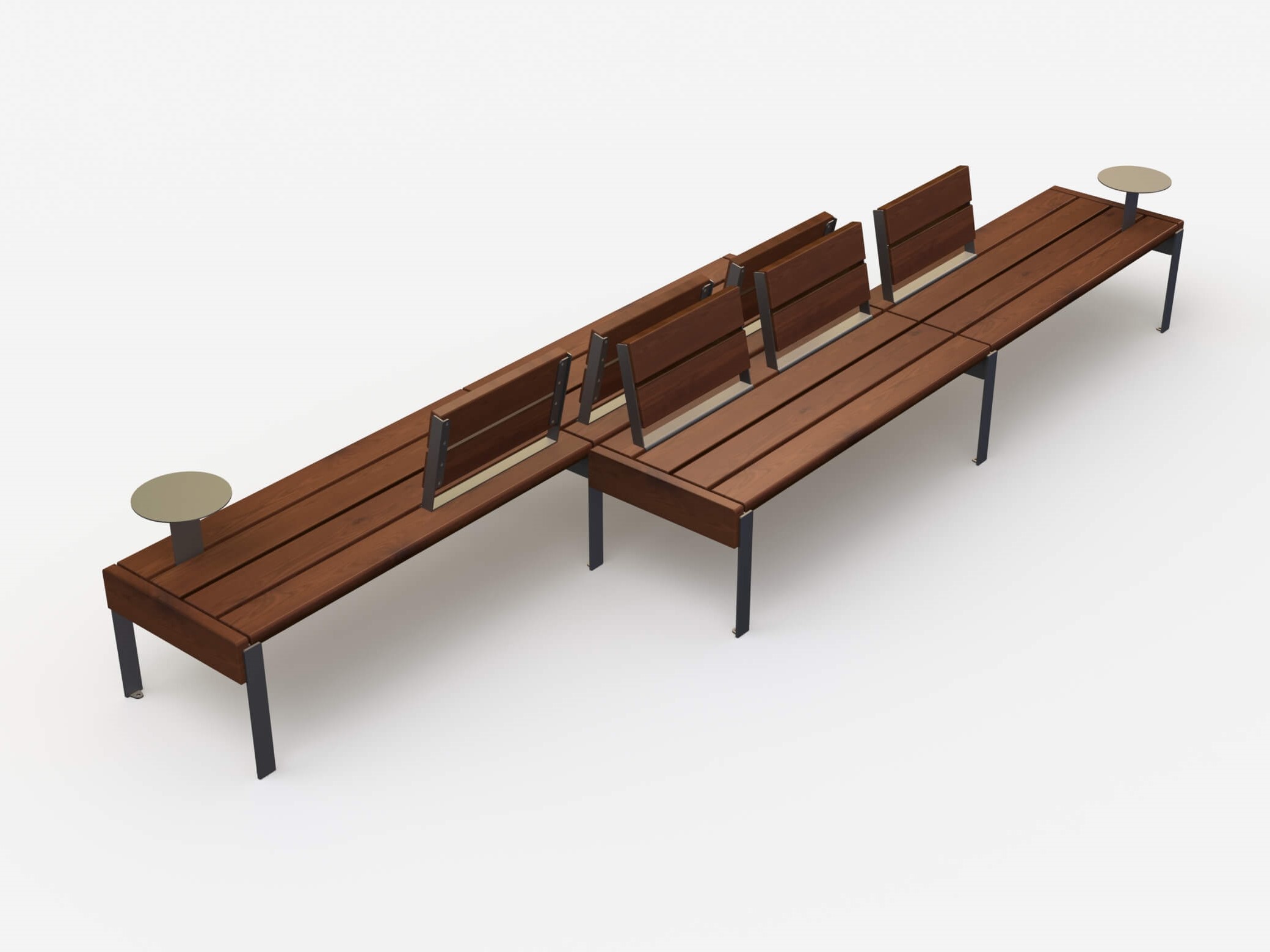 Puiston penkki Jada SET02 on yhdistelmä modulaarista huonekalujärjestelmää Jadan suorista moduuleista, selkänojasta ja pöydistä.